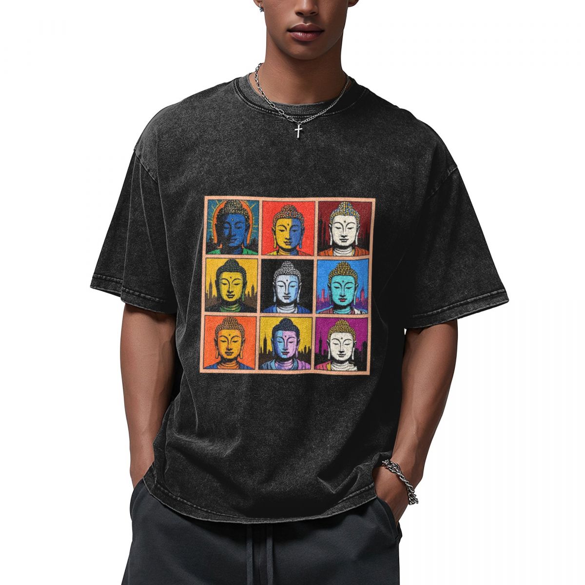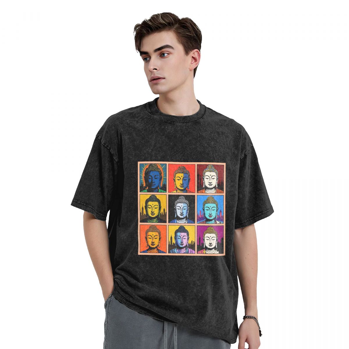 Buddha Stones Premium Weight Cotton Crewneck Washed Vintage T-shirts 669215391