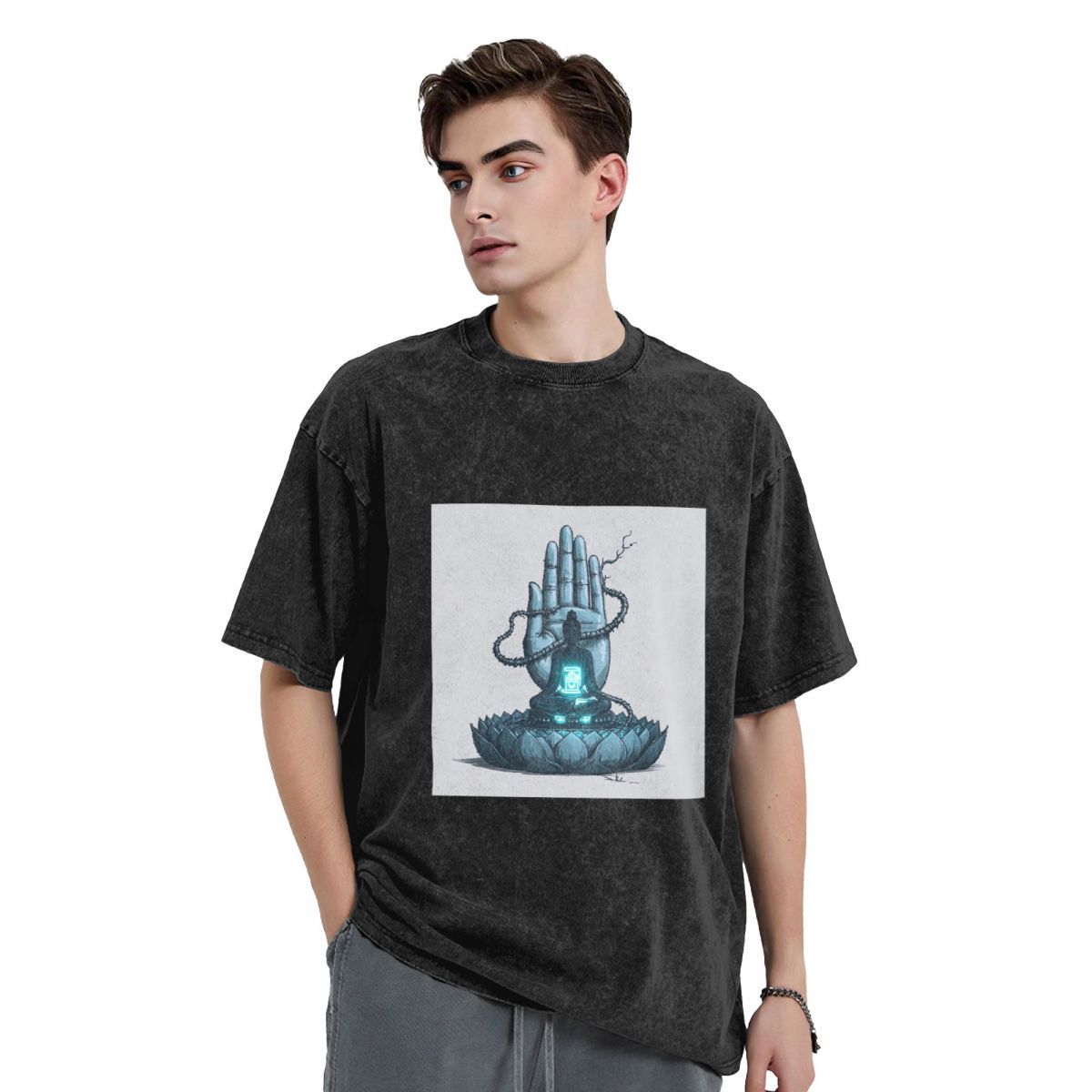 Buddha Stones Premium Weight Cotton Crewneck Washed Vintage T-shirts 669224537