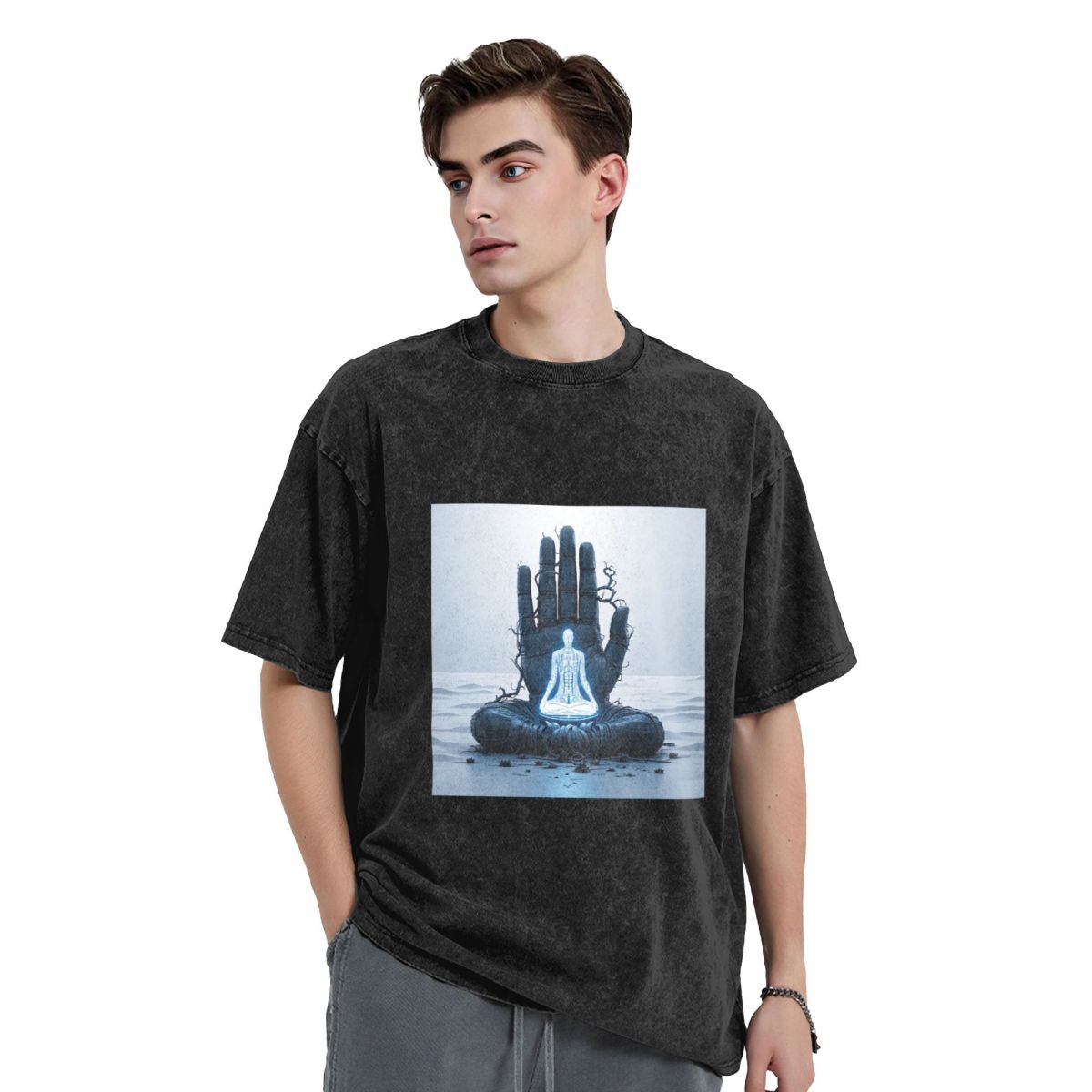 Buddha Stones Premium Weight Cotton Crewneck Washed Vintage T-shirts 669224544