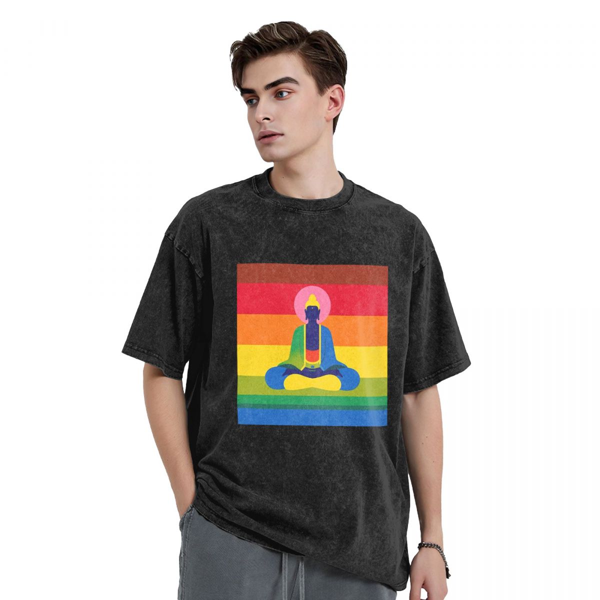 Buddha Stones Premium Weight Cotton Crewneck Washed Vintage T-shirts 669324085