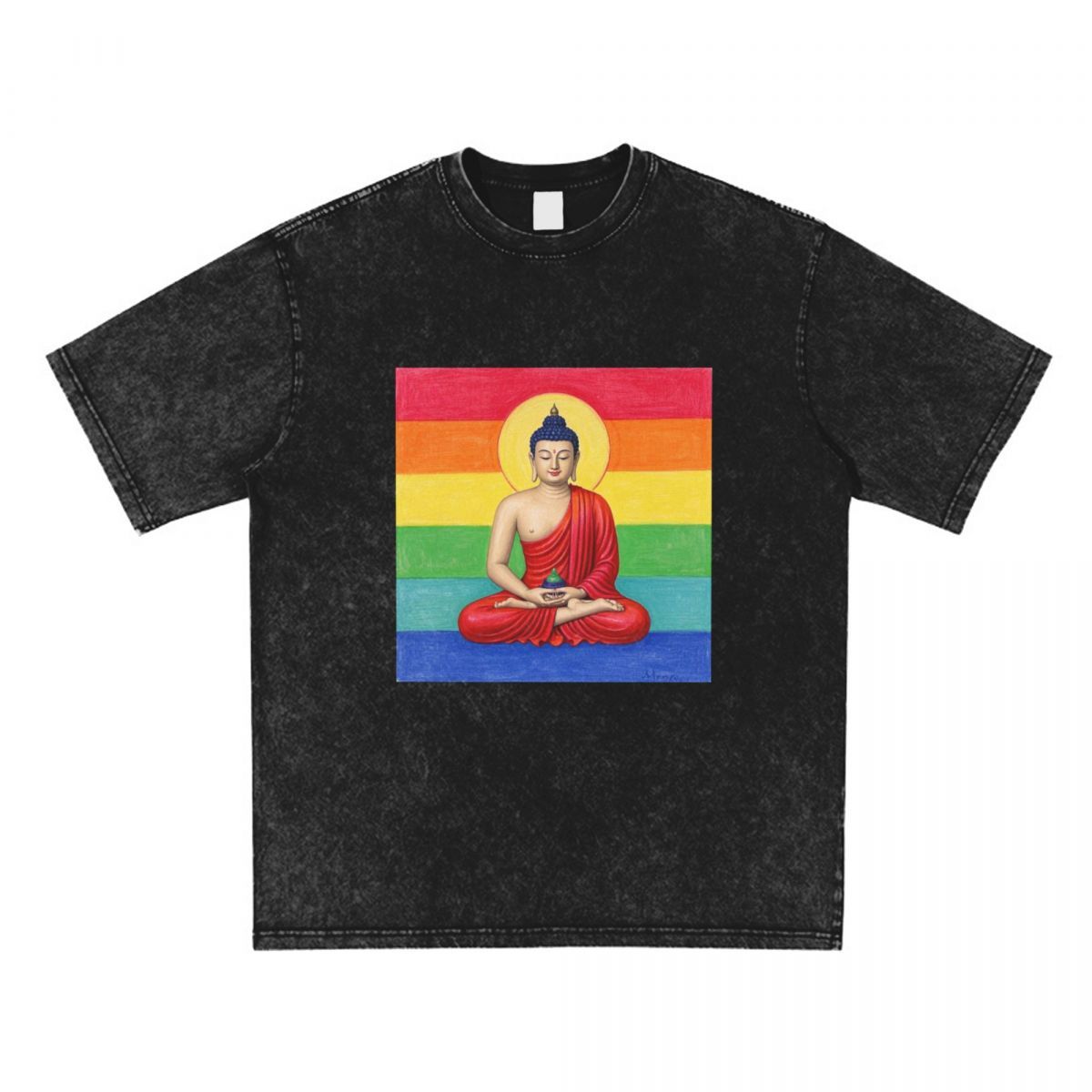 Buddha Stones Premium Weight Cotton Crewneck Washed Vintage T-shirts 669324105