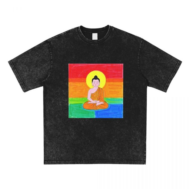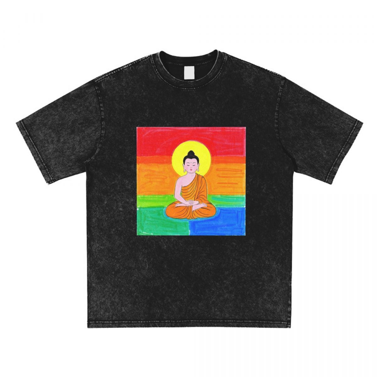 Buddha Stones Premium Weight Cotton Crewneck Washed Vintage T-shirts 669324121