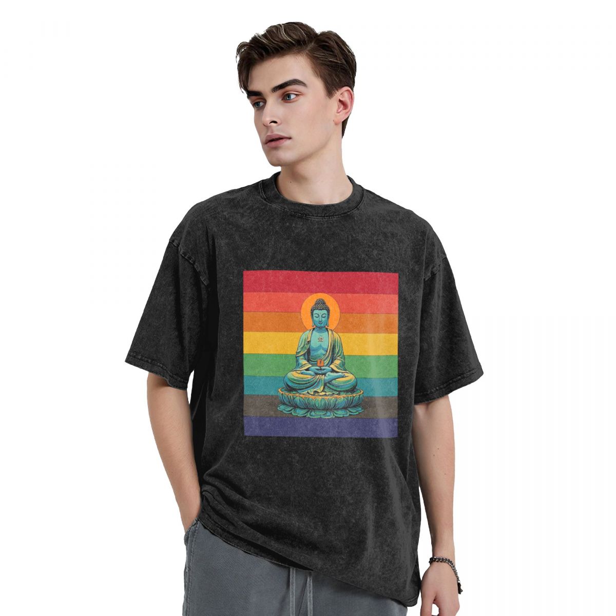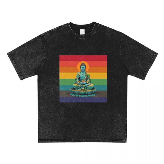 Buddha Stones Premium Weight Cotton Crewneck Washed Vintage T-shirts 669324128