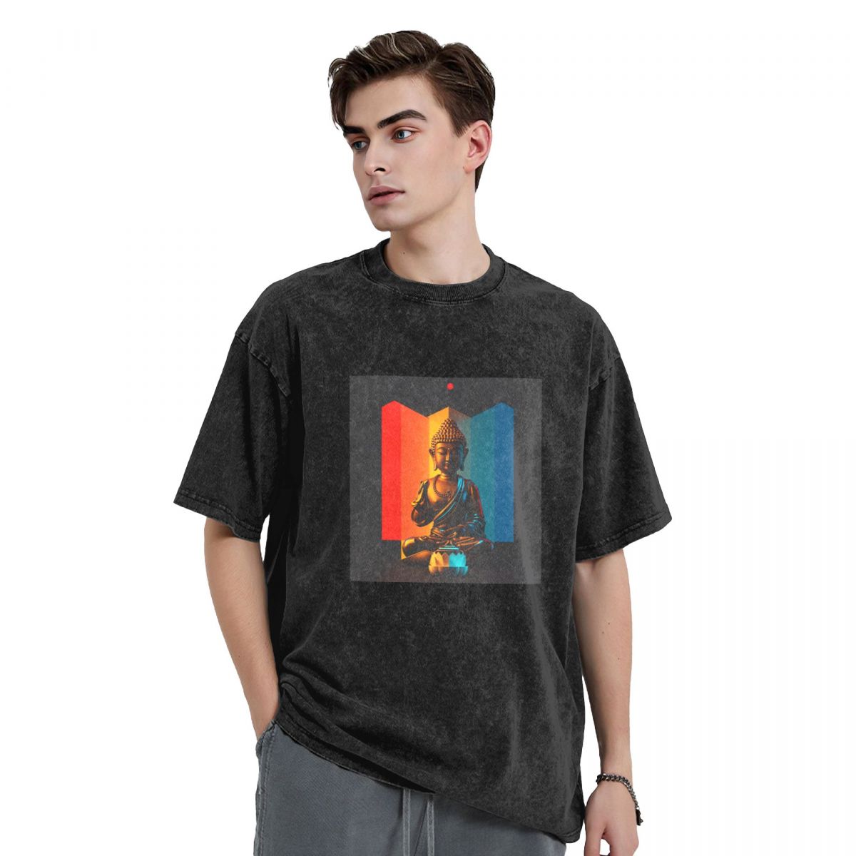 Buddha Stones Premium Weight Cotton Crewneck Washed Vintage T-shirts 669324161