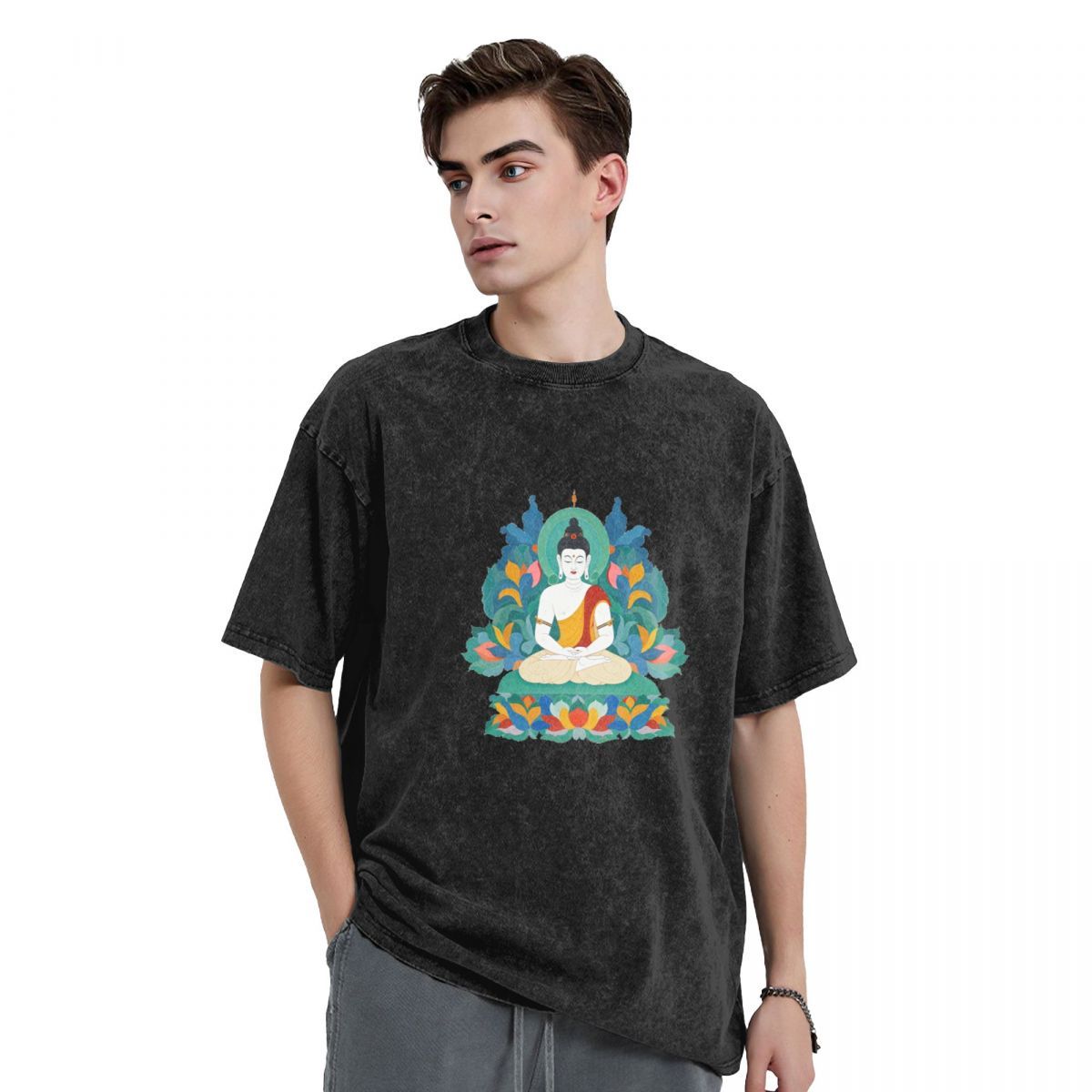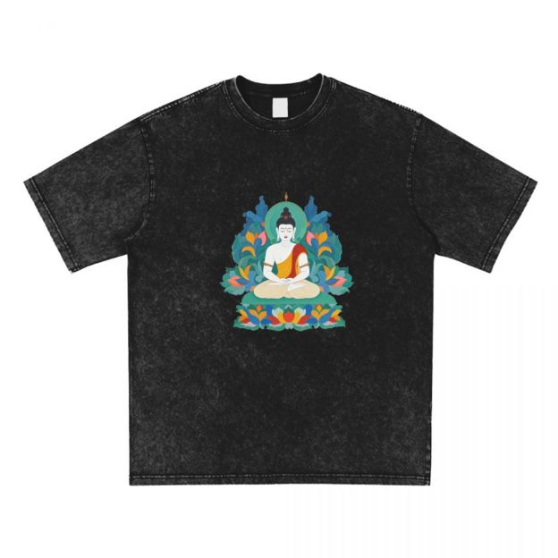 Oversized T Shirts​ Printing Buddha Stones Premium Weight Cotton Crewneck Washed Vintage T-shirts 669619232