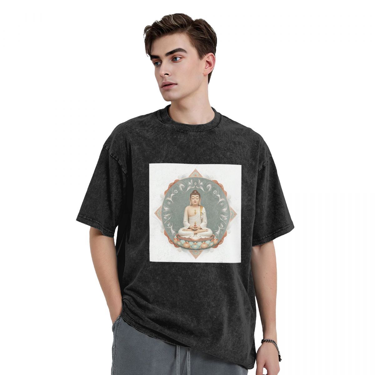 Buddha Stones Premium Weight Cotton Crewneck Washed Vintage T-shirts 669619342