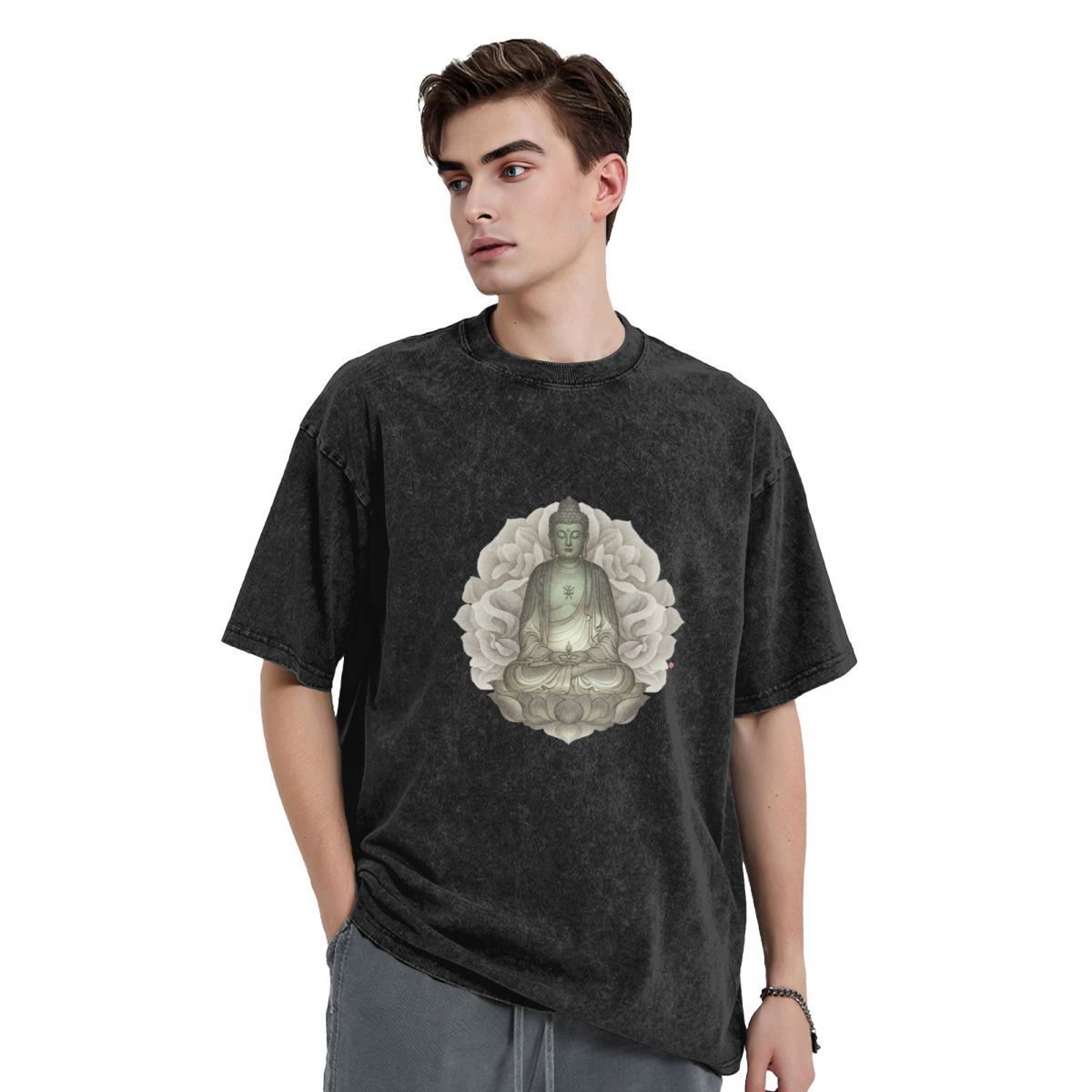 Buddha Stones Premium Weight Cotton Crewneck Washed Vintage T-shirts 669619344