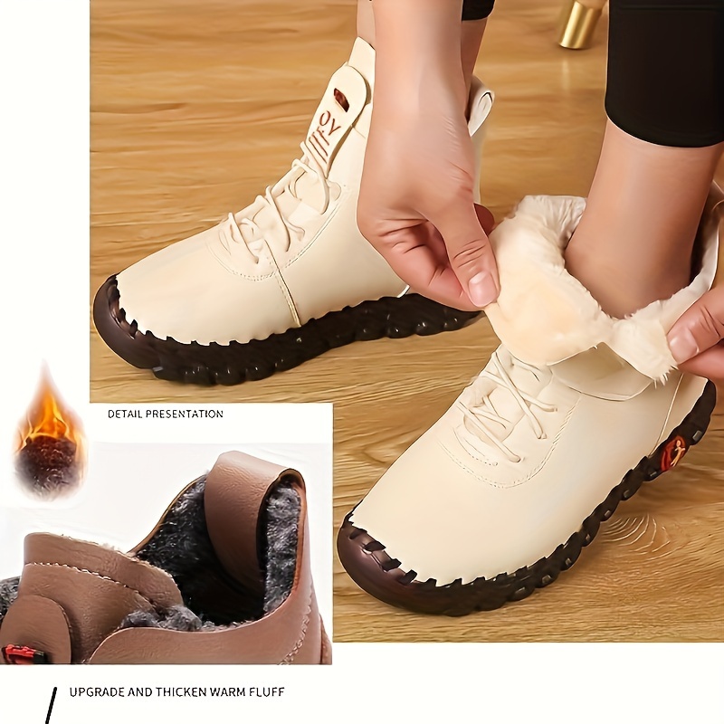 Women's Waterproof Fur Lined Velcro Boots, Casual & Comfy Ankle Boots
